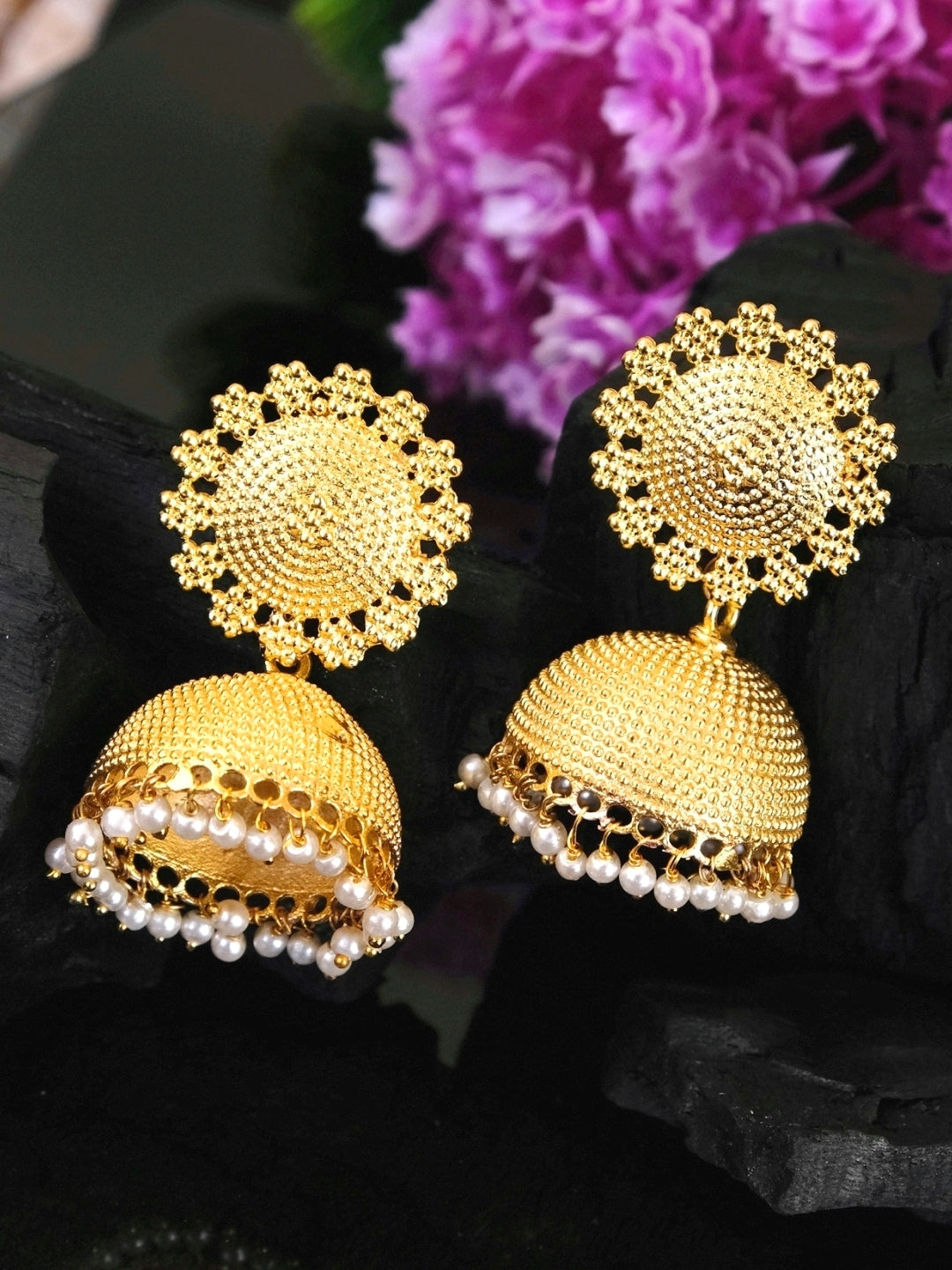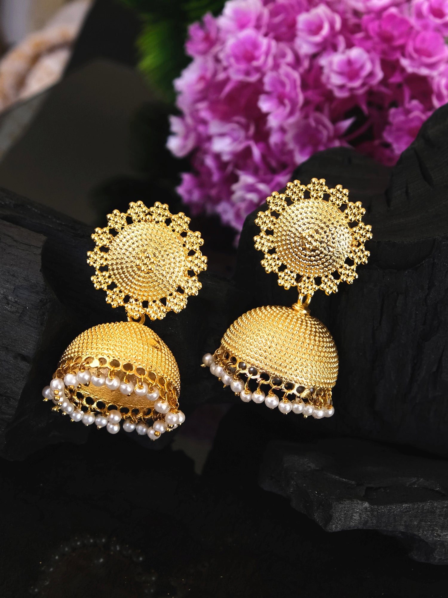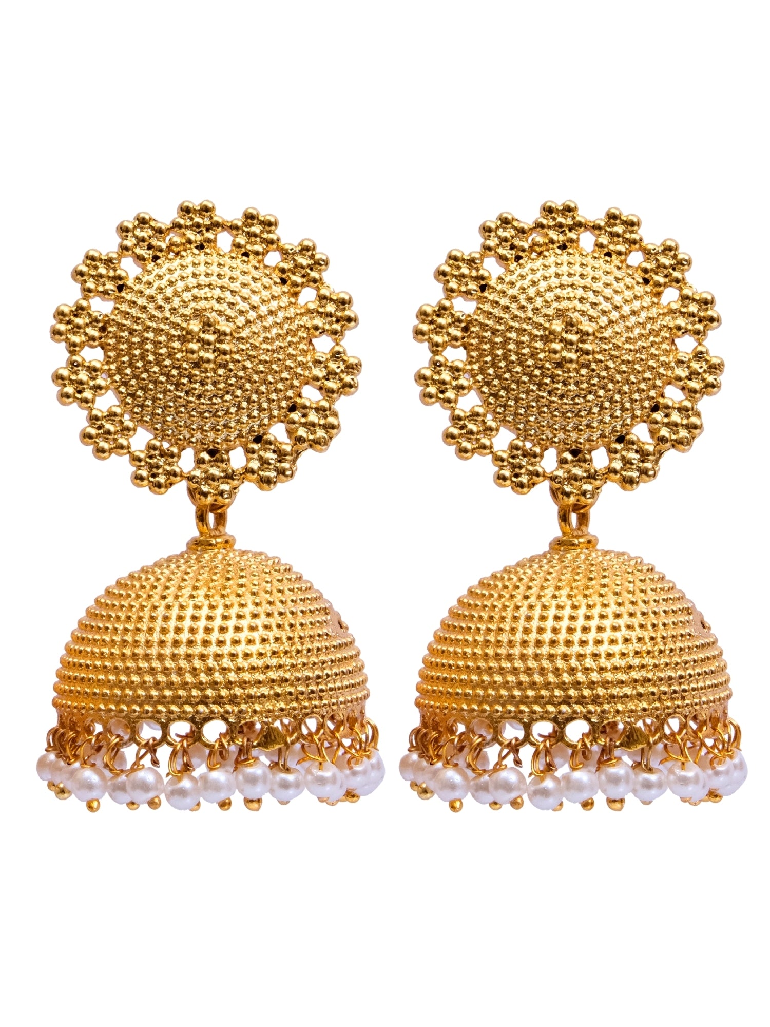 Traditional Gold Plated White Pearl Jhumka Earrings with Jhumki Designs