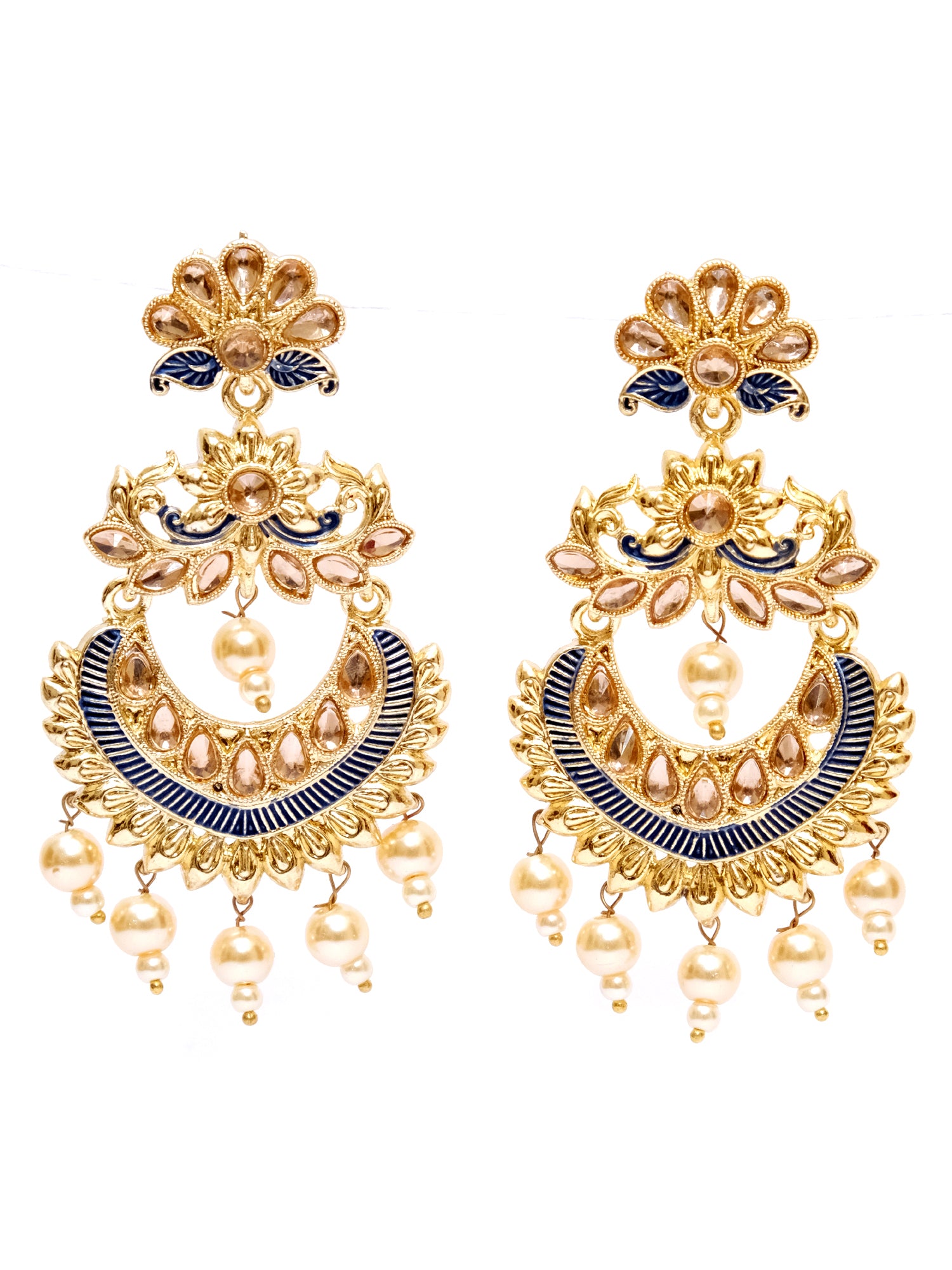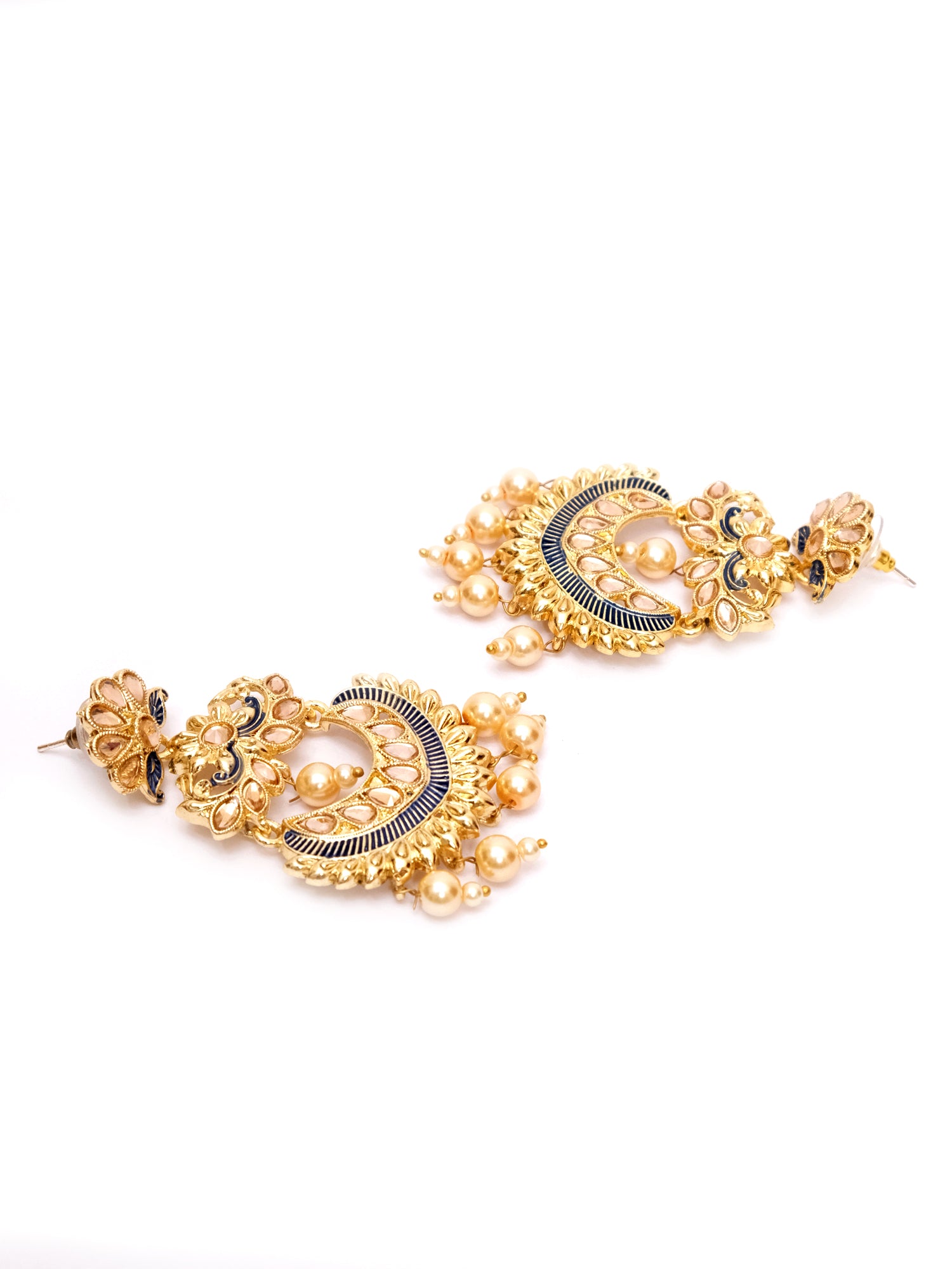 Traditional Gold Plated Kundan Work Blue Chandbali Earrings