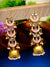 Long Pink Jhumka Earrings with Floral Design, Gold Plated and White Pearls