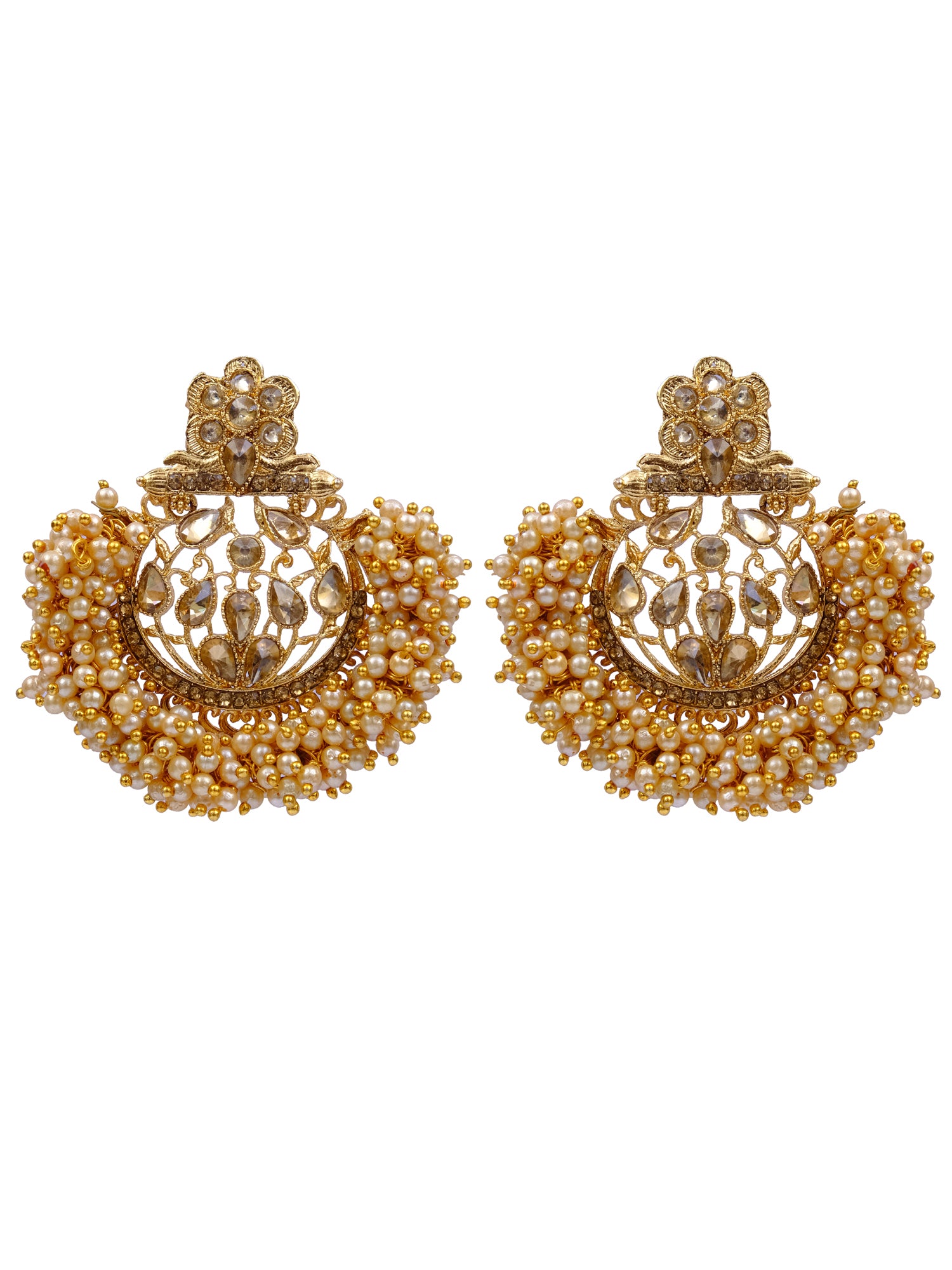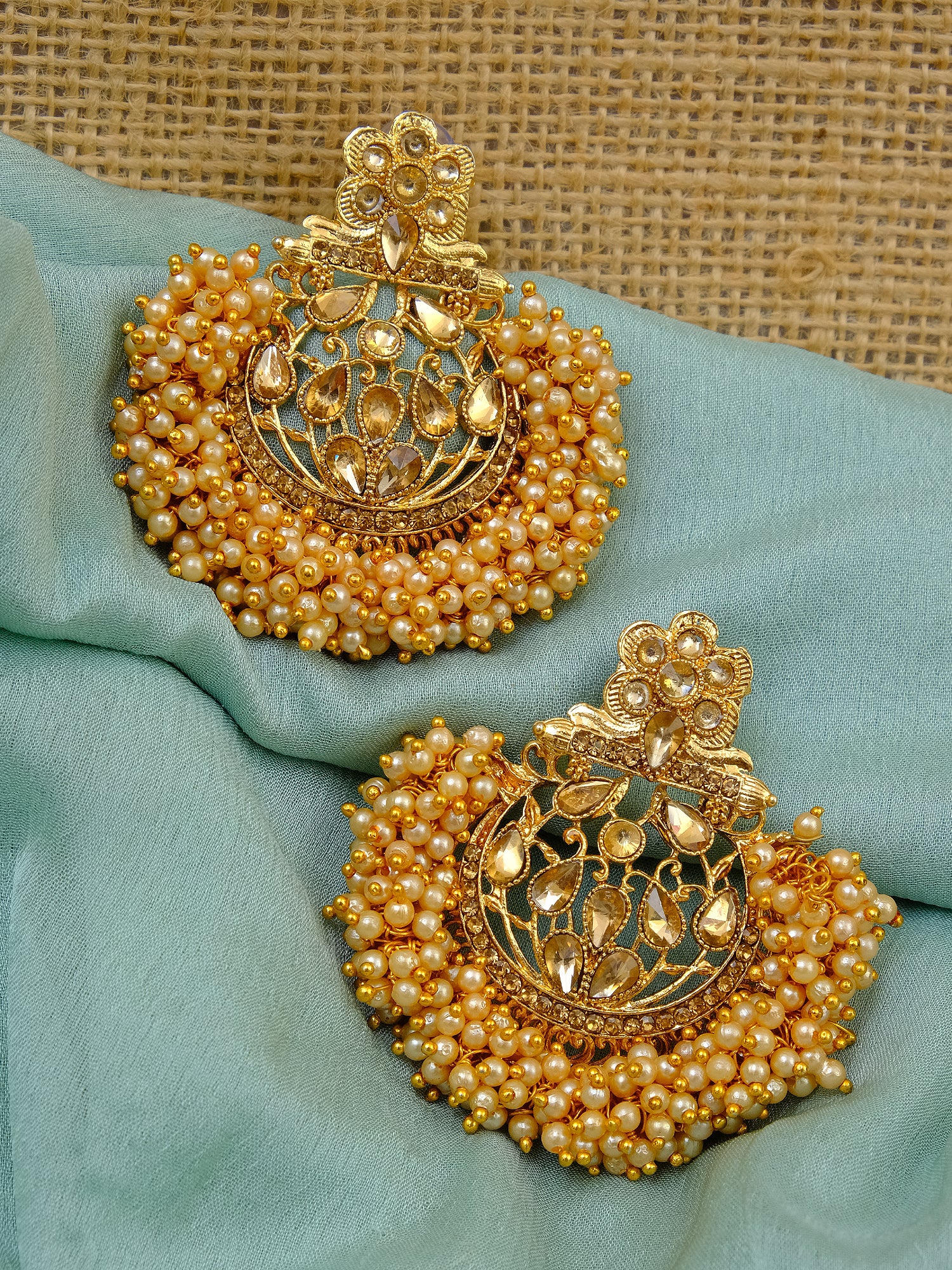 Traditional Pearl Chandbali Earrings - GoldPlated Kundan Dangler for Party Wear
