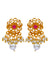 Pink, gold-plated, white pearl and cowrie shell jewellery set with flower design for women's festive occasions