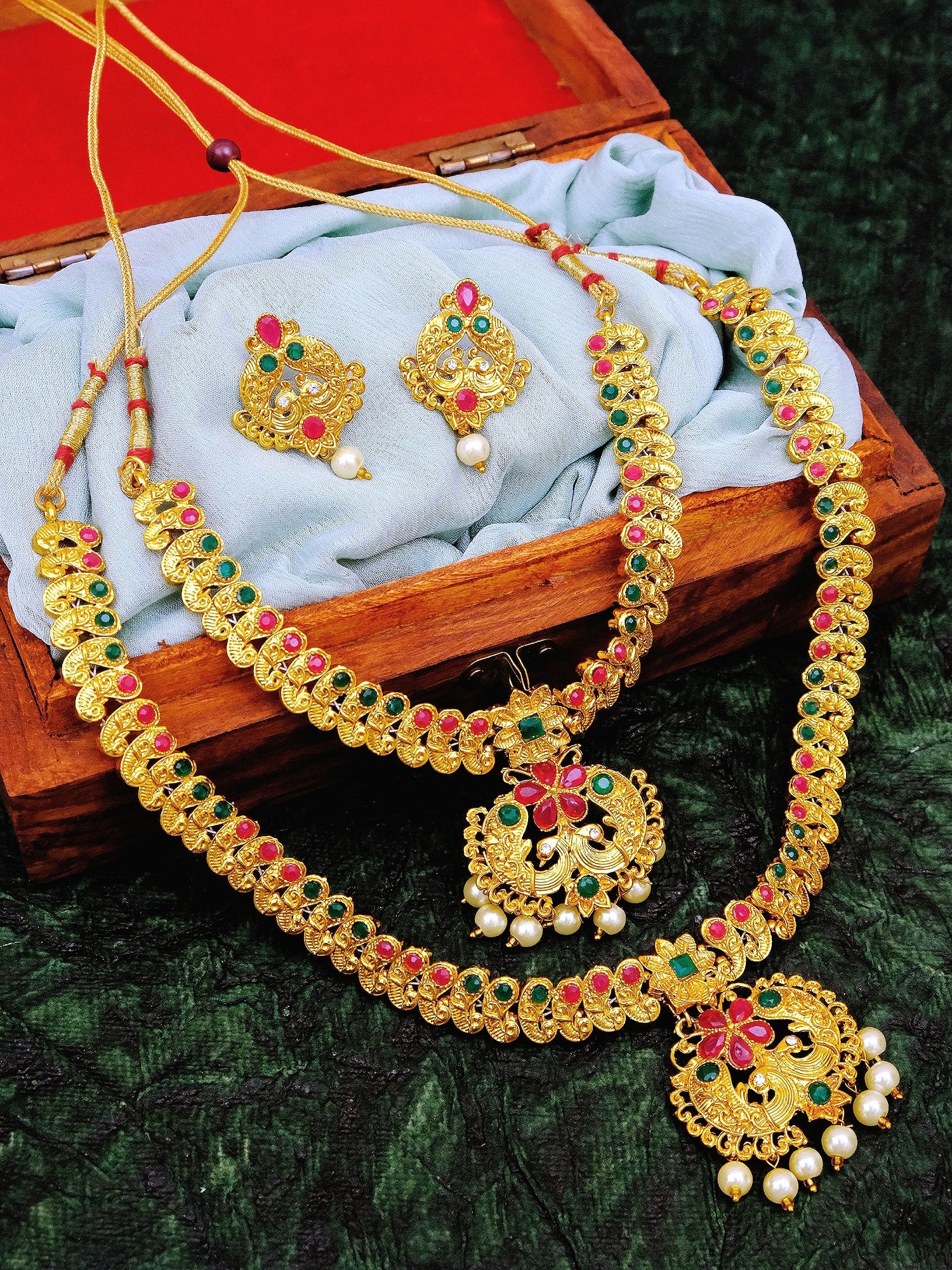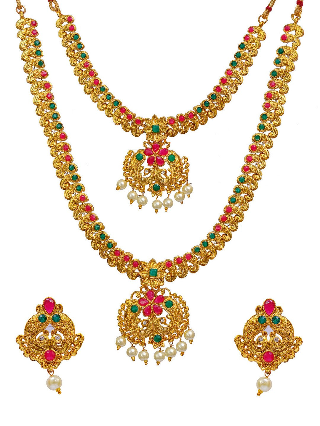 Traditional Indian Kundan Gold-Plated Multi color Jewellery Set with Earrings RAS0284