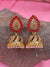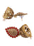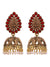 Gold Plated Traditional Jhumki Earrings with Red Beads and Stone for Women