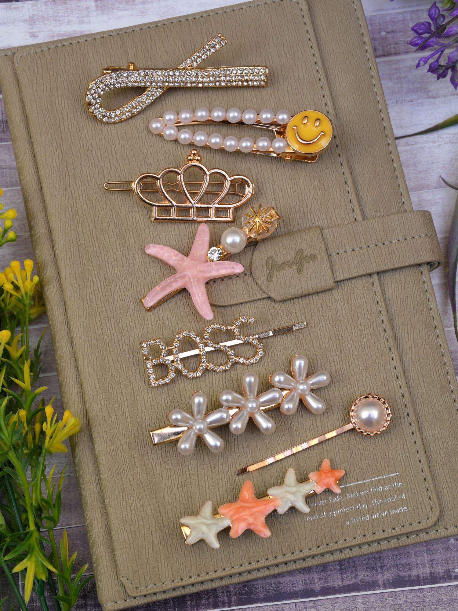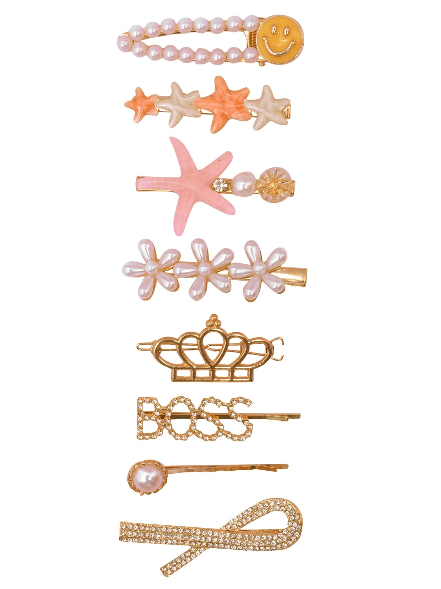 - Stylish Gold-Plated Hair Clips for Women and Girls - Multicolor, Embellished Set of 8