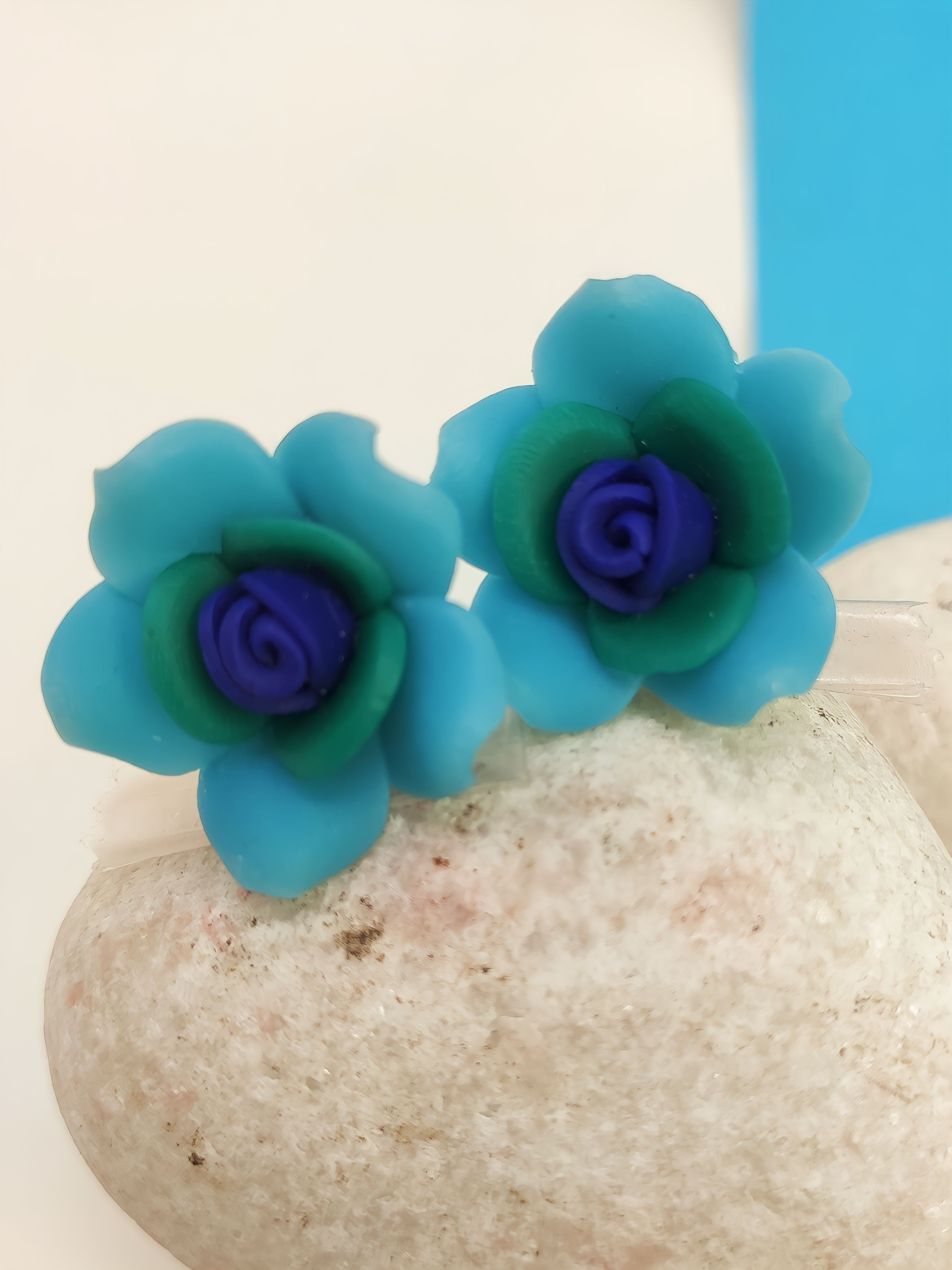 - Chic Turquoise-Blue Rose Earrings: Handcrafted Glamour for Trendy Seniors, Women & Girls
