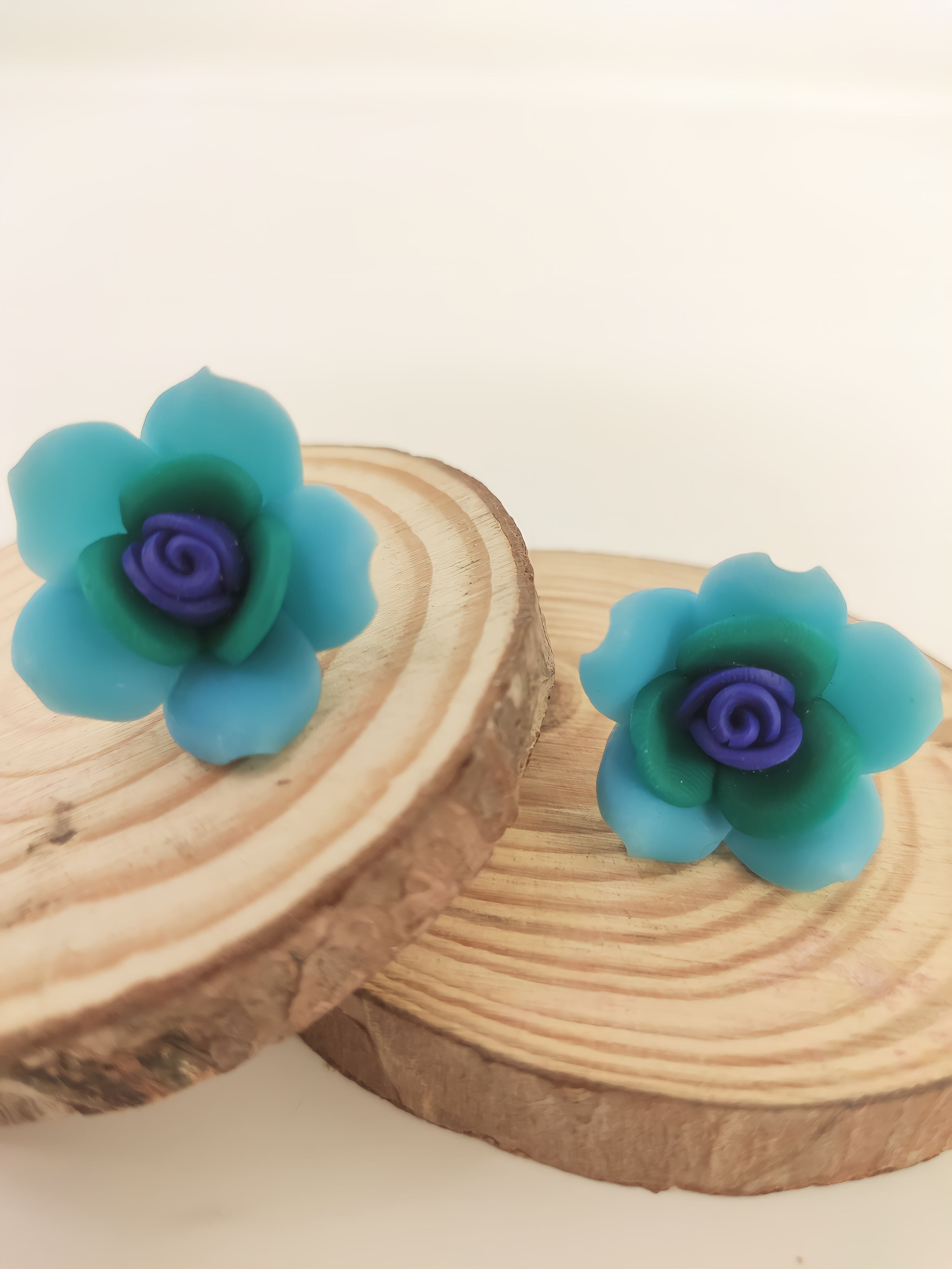 Chic Turquoise-Blue Rose Earrings: Handcrafted Glamour for Trendy Seniors, Women & Girls