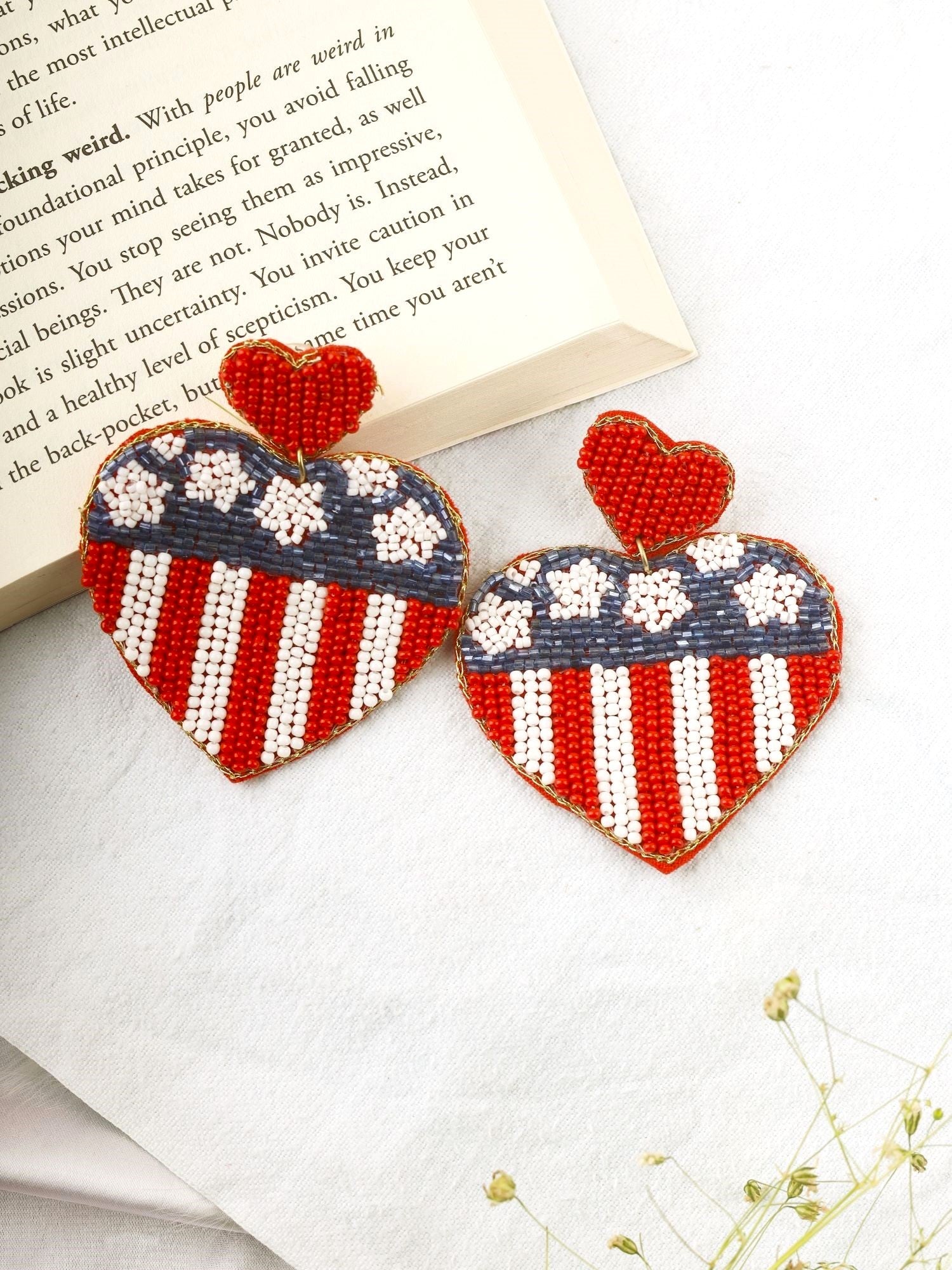 USA Flag Earrings- Quirky Handmade American Flag Beaded Earrings for Women