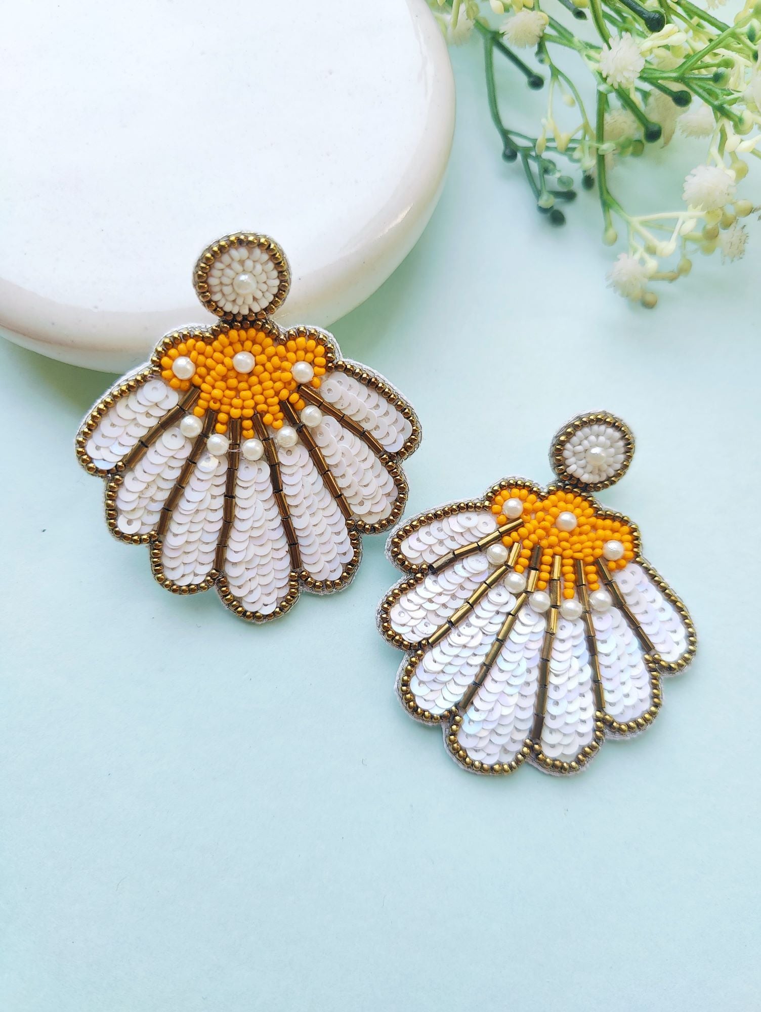Charm Radiance: White Handcrafted Beaded Danglers for All Celebrations