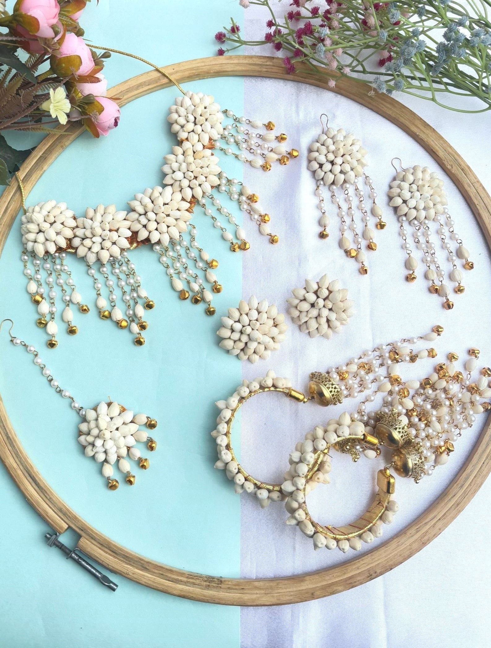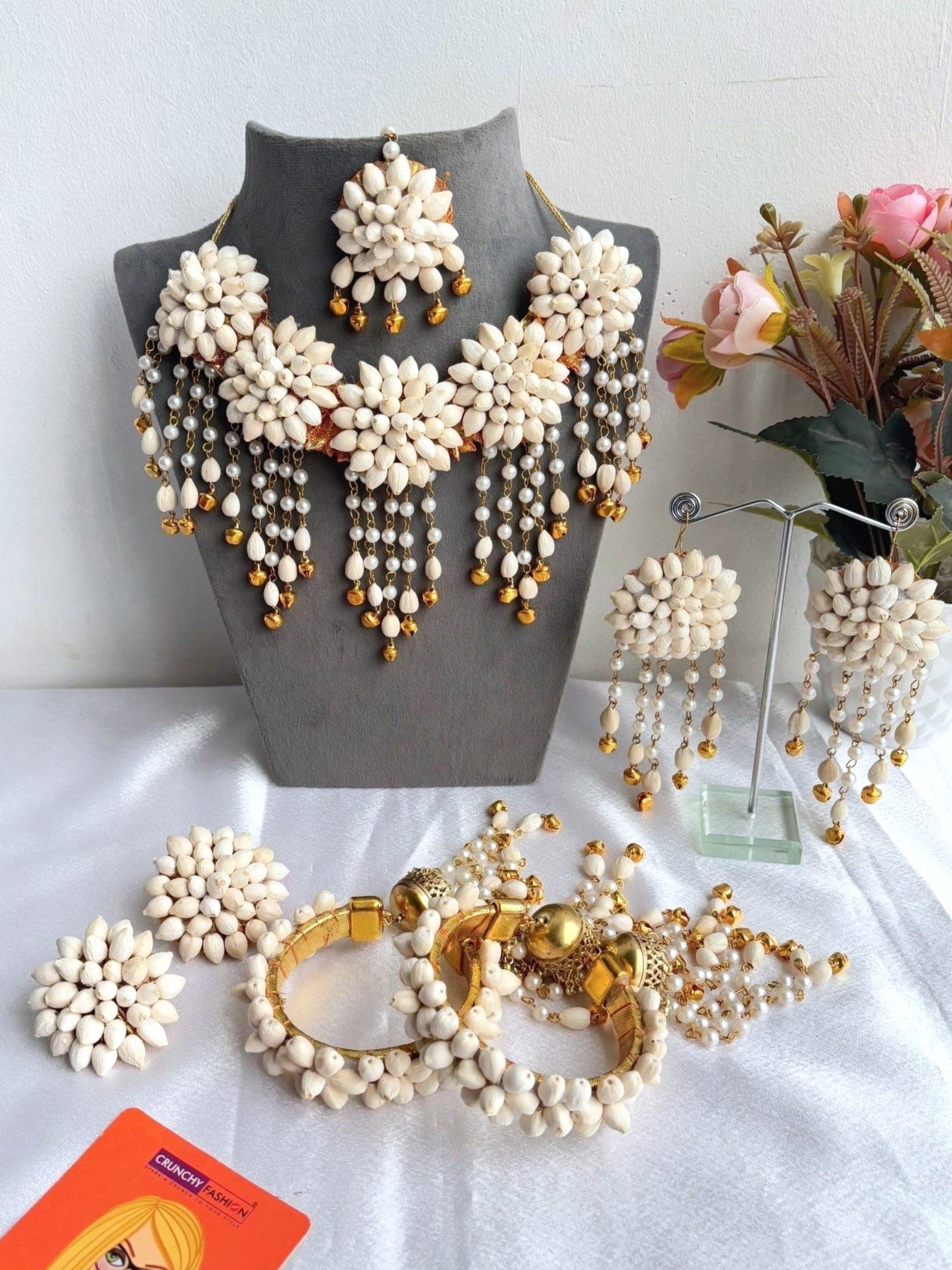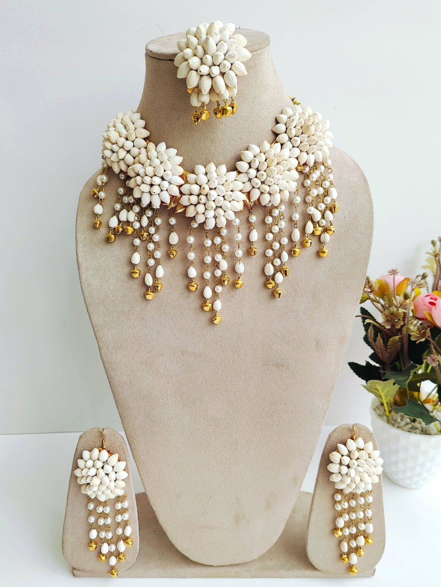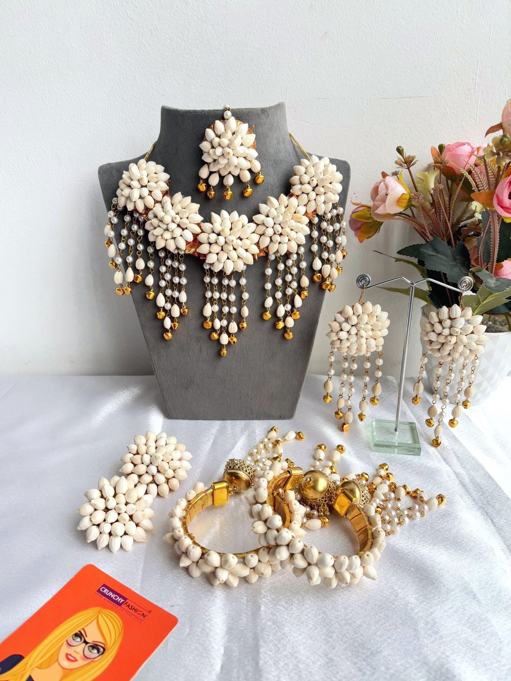 White Mogra Floral Haldi-Mehndi Jewellery Set for Brides