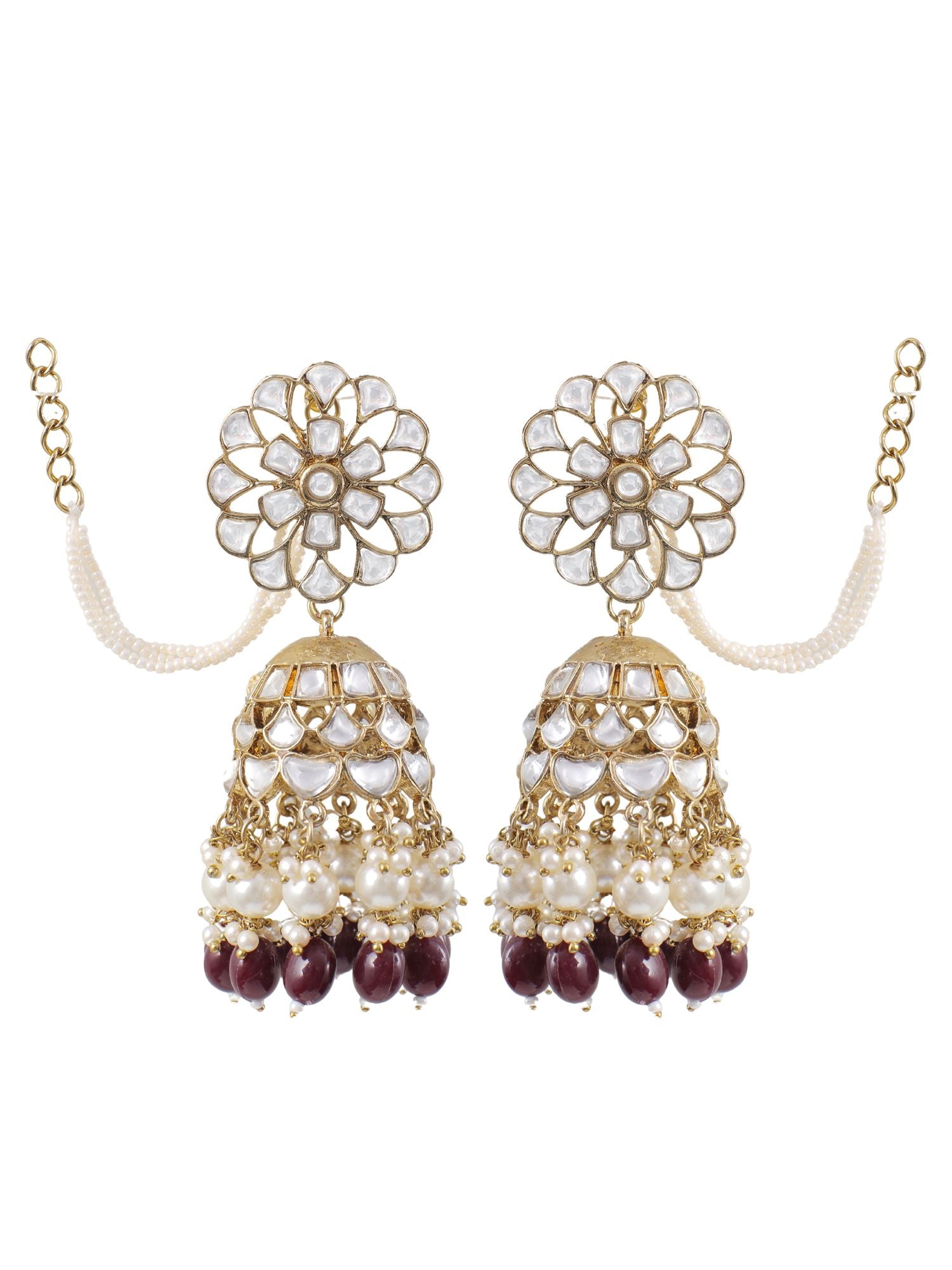 Wine Red Drops Kundan Studded Party Jhumkas for Wedding/Party