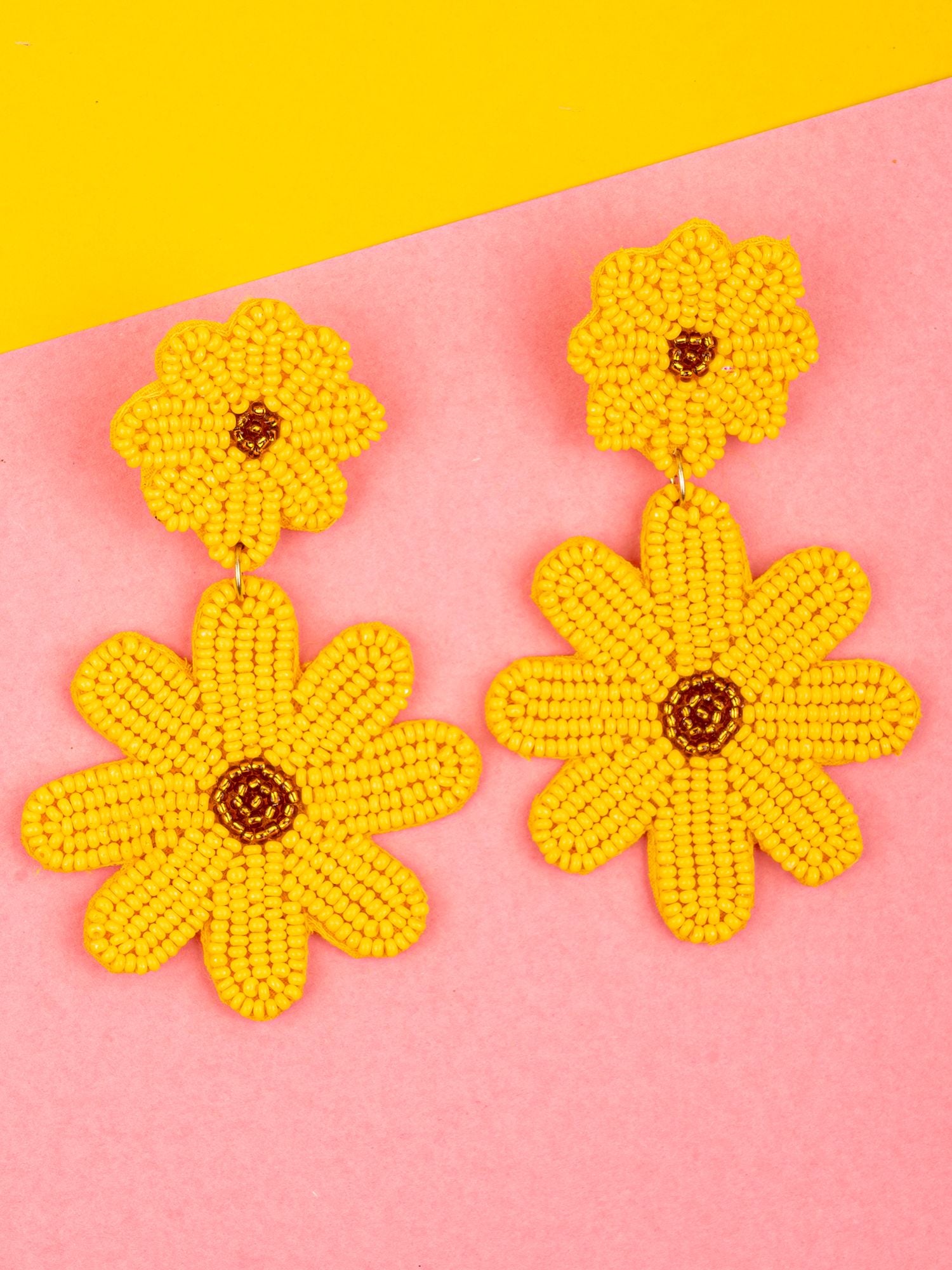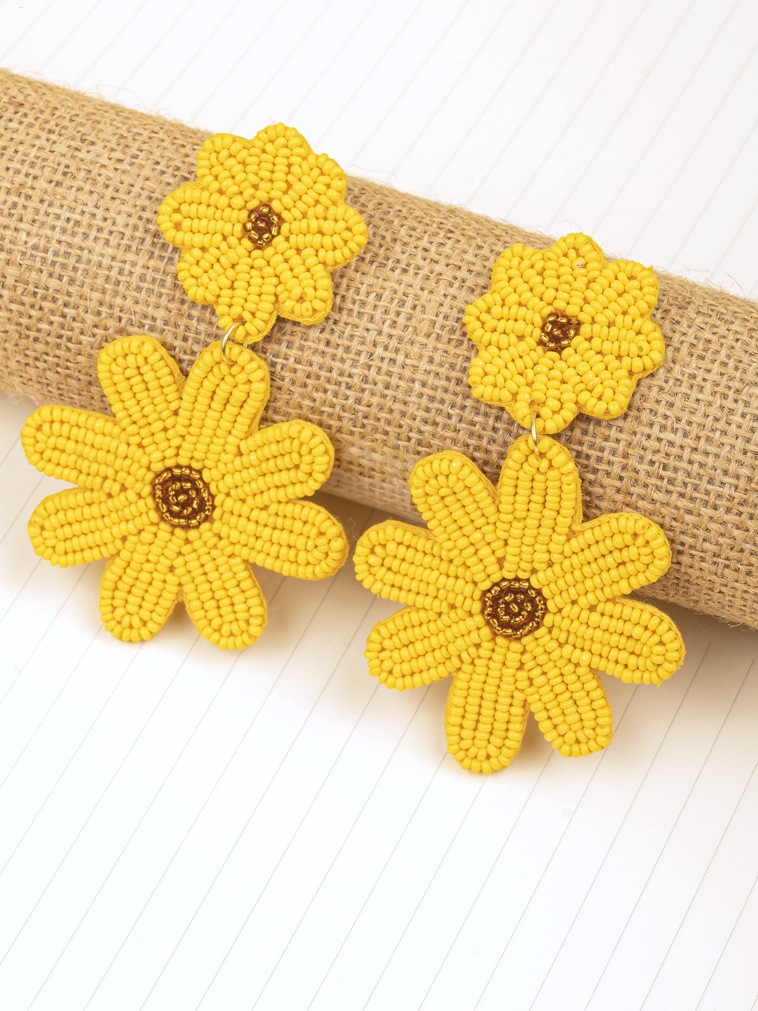 Sunshine Bloom - Handcrafted Yellow Beaded Floral Earrings for Women and Girls