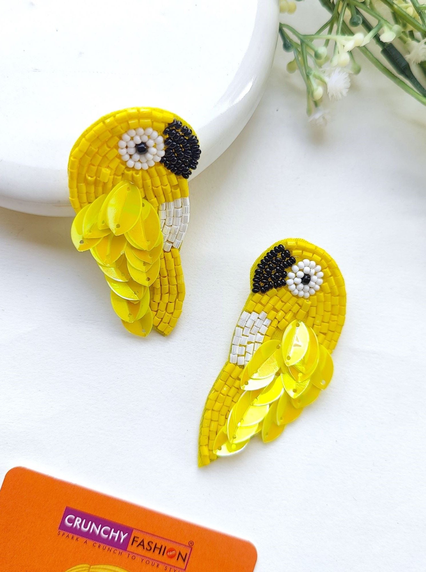 Vivacious Yellow Panchhi: Handmade Floral Drop & Dangler Earrings for Fashion-Forward Women